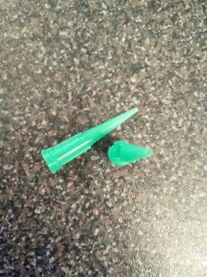 Nibs for luer lock bottles, Bright green suitable for body glue, olive green is a wider diameter to the bright green and is suitable for thicker pastes like henna